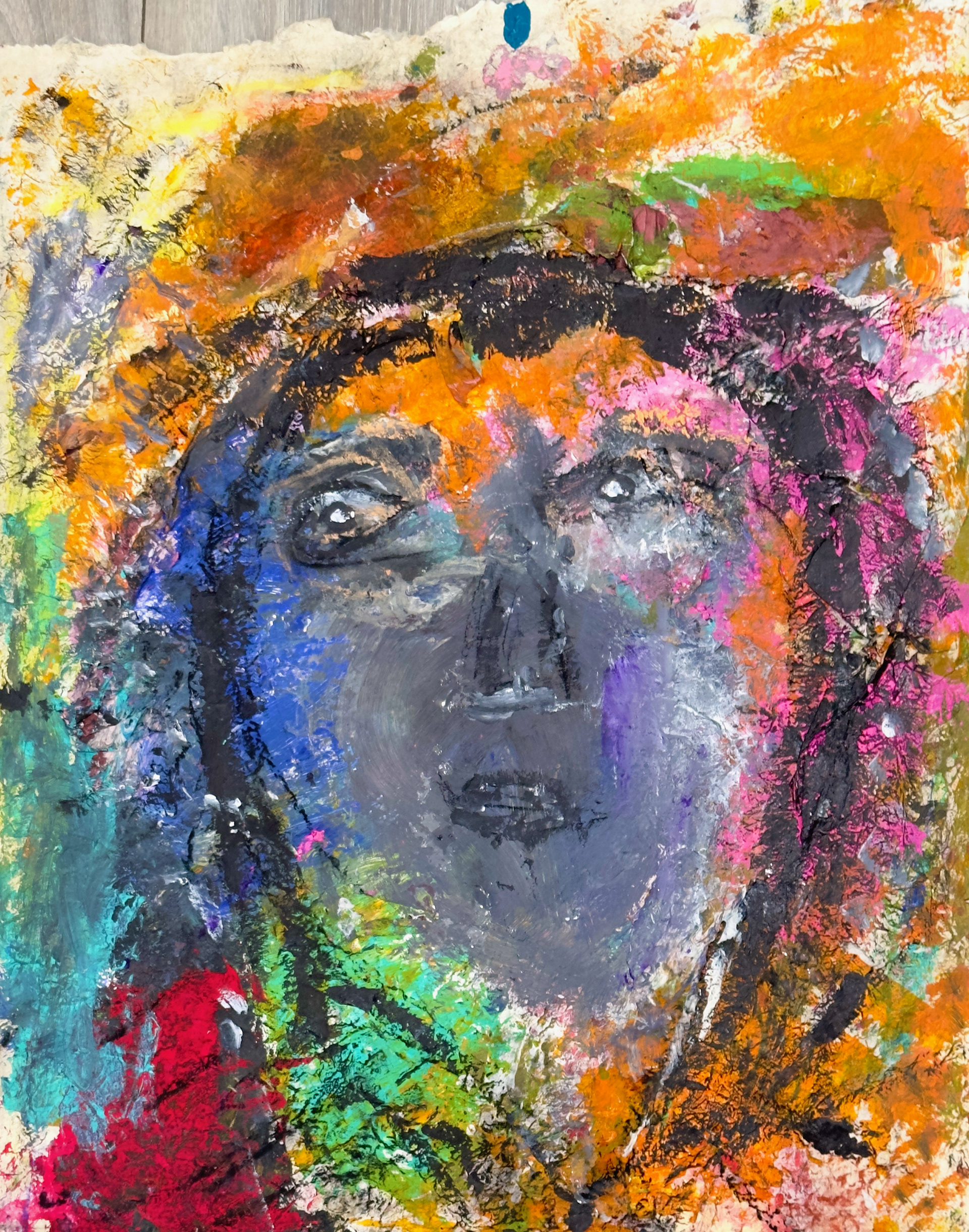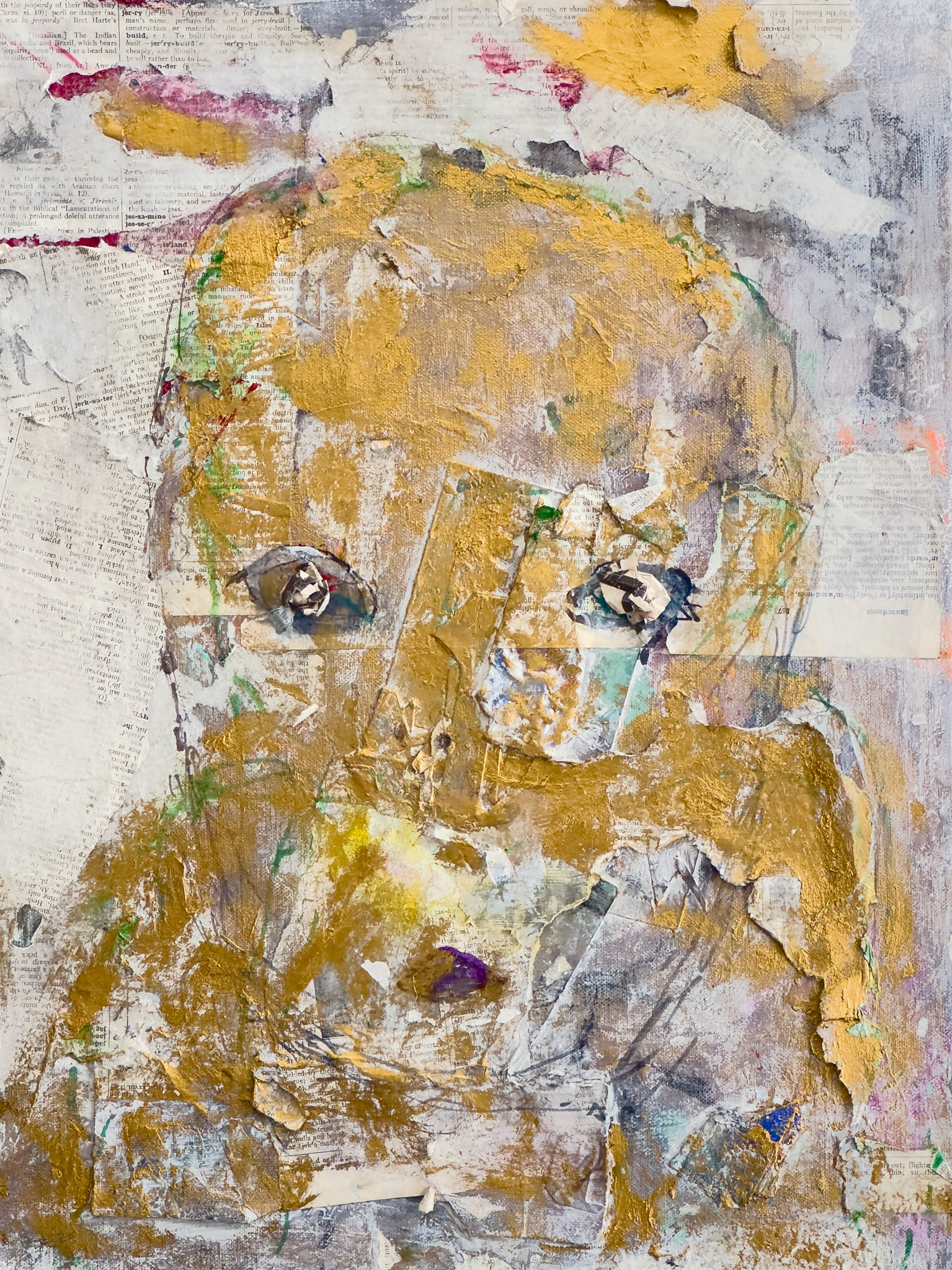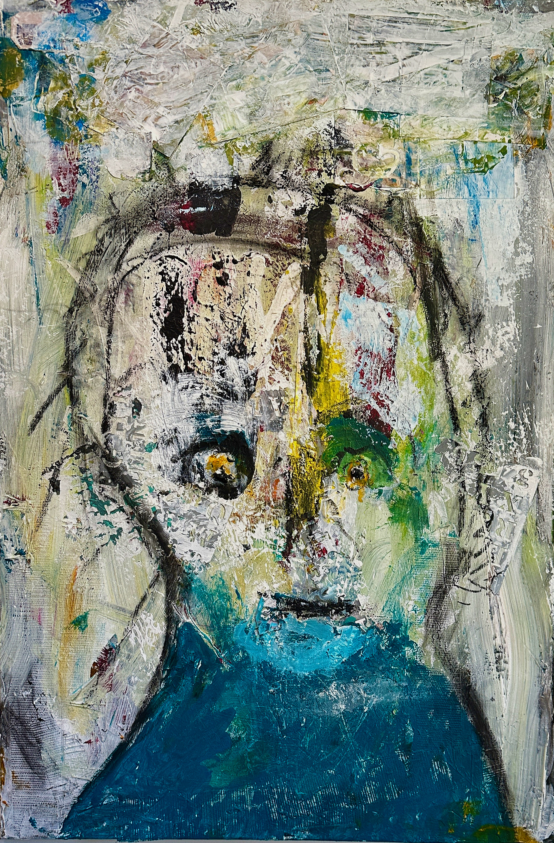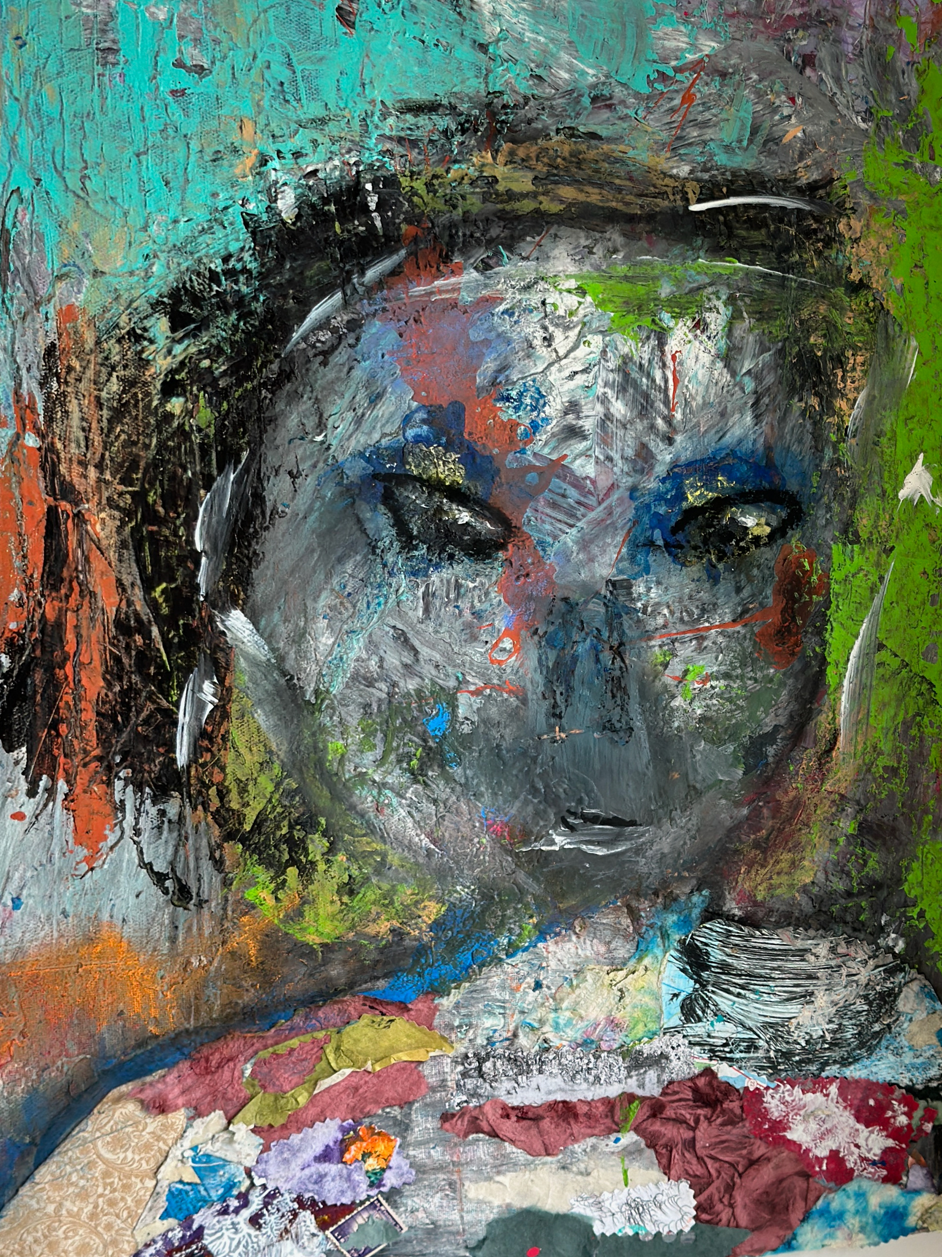 In my early 40s, I was diagnosed with early-onset Parkinson’s Disease. While frightening and progressively more limiting, it’s also given me the mental freedom to create and explore in ways I had not allowed myself to do previously. Over the past 25 years, I have explored a variety ofmediums with a recent focus on painting and collage. My current Collection, The Faces of Parkinson’s, is deeply personal and introspective, offering an honest and visceral reflection on the profound impacts of living with this disease.